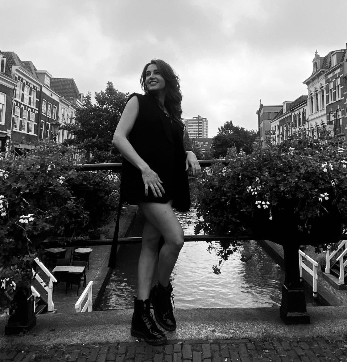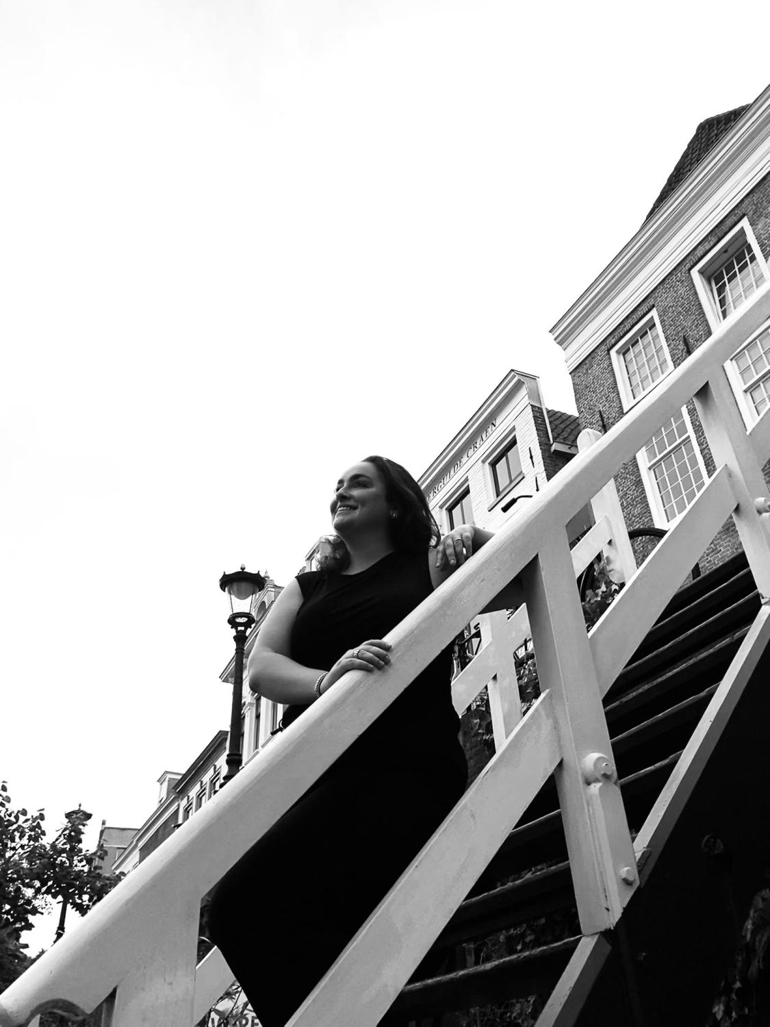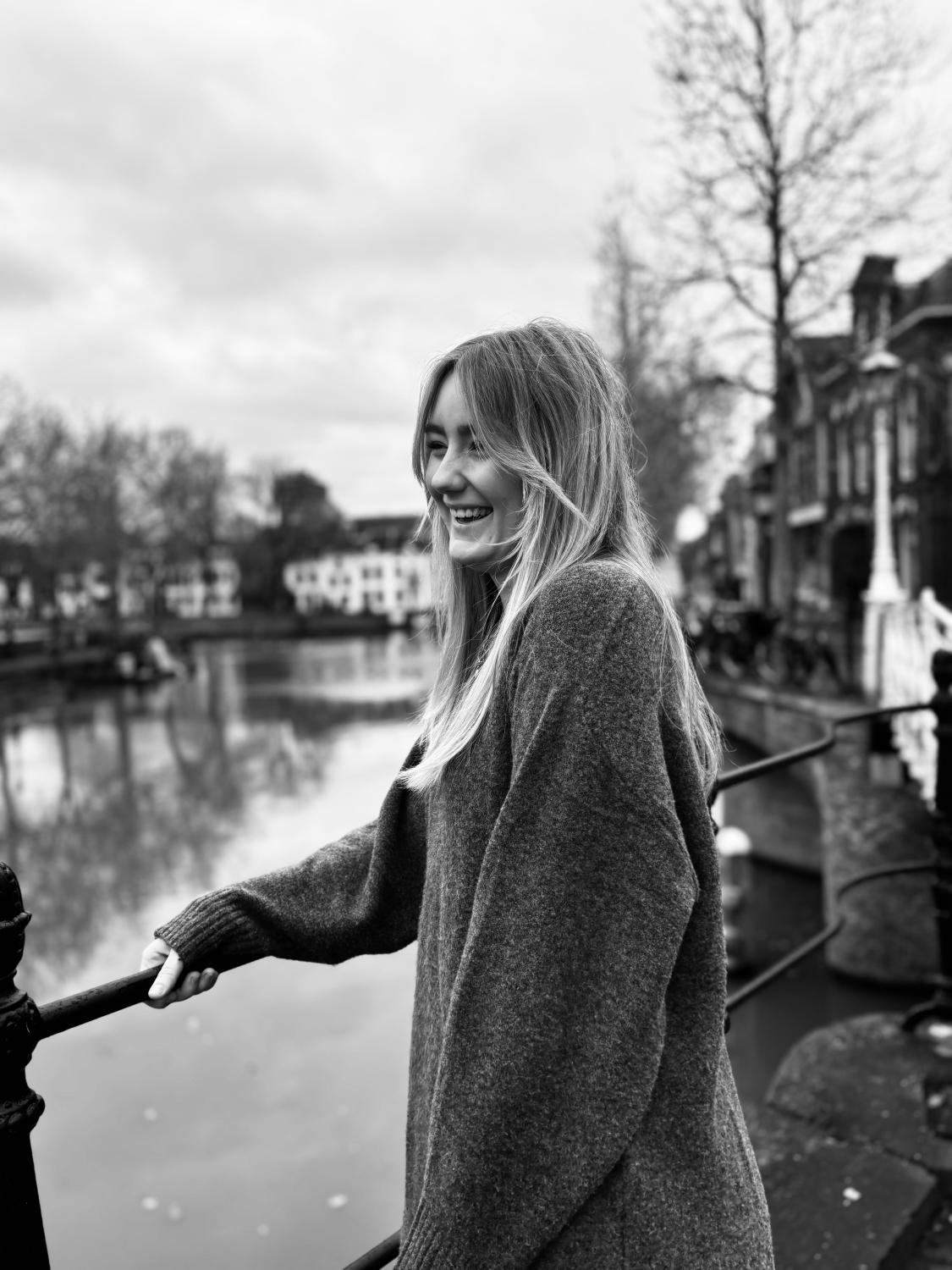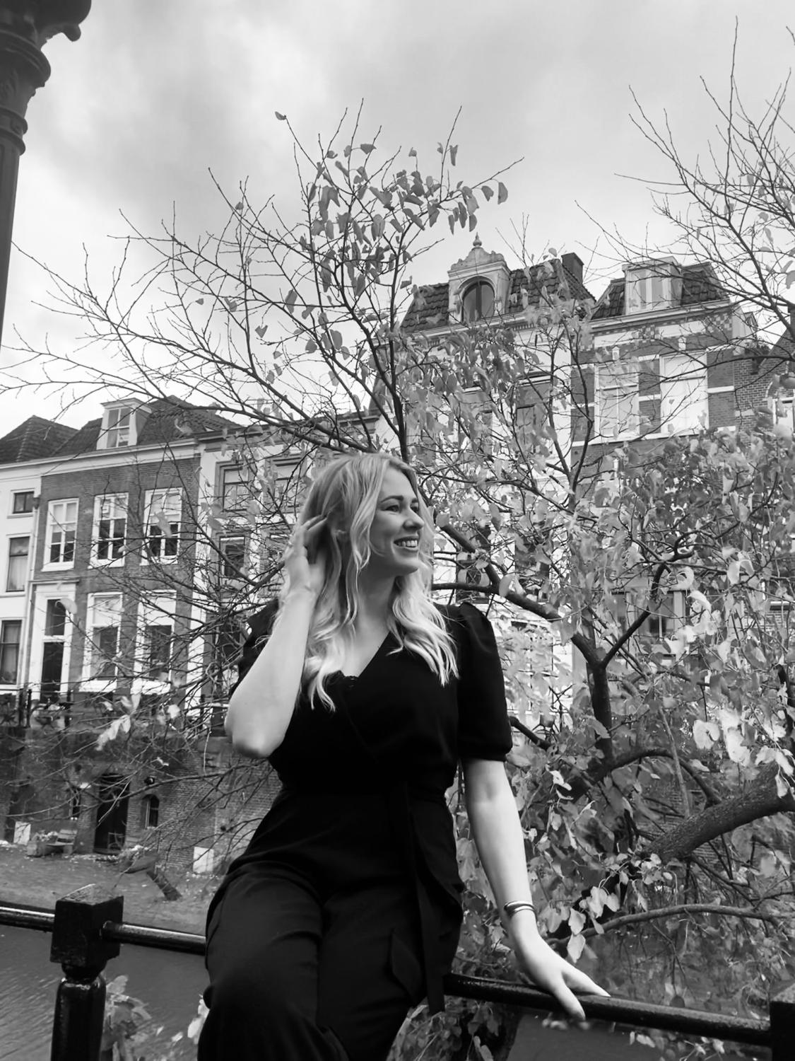 Utrechtse roots, ze loopt altijd op hakken, ultiem lang haar en krijgt het altijd voor elkaar om haar kleding te verpesten met verf.